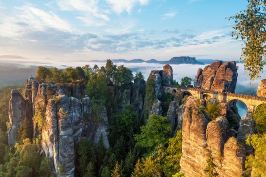 薩克森小瑞士國家公園是中歐獨一無二的白堊砂岩侵蝕景觀,易北河在此穿行,侵蝕出獨特的砂岩山壁與河谷,幽深的谷地、平頂山和峽谷是這裡地形最大的特點。