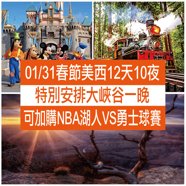 飛美家旅遊 春節美西雙樂園12天10夜特別團