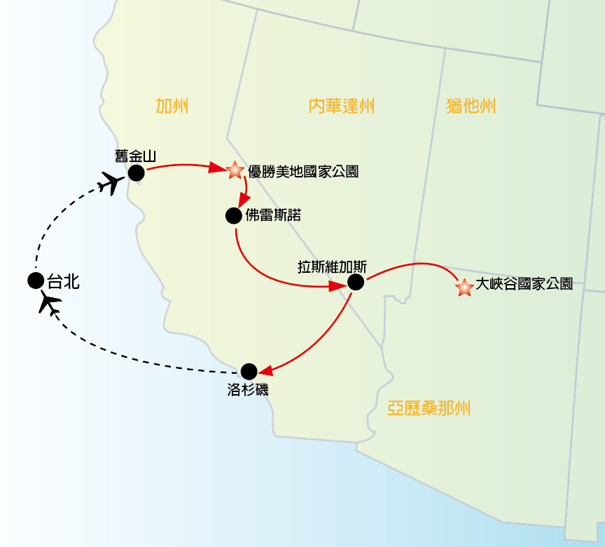 3.因應冬季氣候狀況,如優勝美地路況不允許時,考量旅客安全,將改為十七哩海岸替代,敬請見諒。