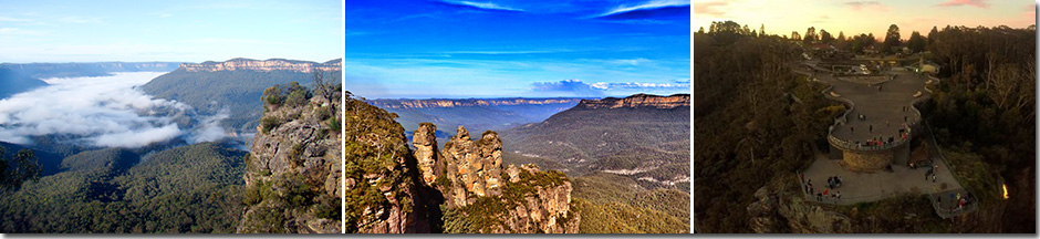 國家公園內著名的迴聲角& 三姊妹岩,搭乘景觀世界Scenic World傾斜式深谷列車, 直直向下深入300公尺地底礦坑洞穴,有如坐雲霄飛車般的刺激。 搭乘360度高空觀景纜車:讓你飽覽傑美遜山谷風光及卡頓巴瀑布外, 因車底為透明強化玻璃,下方視野沒有阻礙,彷彿乘坐於一輛水晶巴士帶您空中翱翔,遠眺三姊妹岩! | |