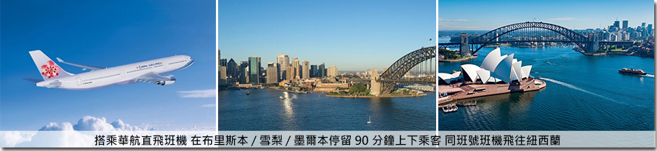 今日於桃園機場集合,搭乘國際航段晚班機,前往擁有460萬人口的澳洲第一大城◇雪梨。 ![]() |
