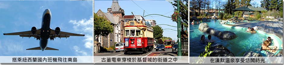 離開溫泉鄉,我們今日驅車前往南島的沿海小鎮凱庫拉(Kaikoura)。凱庫拉是個海洋生物的天然棲息地,因為暖流與寒流在此交會,形成了一個擁有豐富浮游生物的海域和食物供應鏈,同時還有深達1000米的大海溝,因此吸引了大批各種魚群到此覓食,讓許多不同種類的海洋生物與飛鳥以此為家。飛美家旅遊特別安排海豚奇遇之旅或您可自由選擇付費參加與海豚共游體驗活動,和最擅長特技表演的暗色斑紋海豚 親密接觸,近距離感受他們的優雅與美麗。您將可能不經意地就與棲息在半島的海豹群相遇,或是發現抹香鯨正靜靜地飄浮在海面上,也可以欣賞遠洋鳥類信天翁或各類海鳥的飛行姿態。回到基督城,市中心的植物園聞名於世,這裡氣候適宜花卉生長,因此贏得了「花園之都」的美名。而且現代感與復古交錯,有著許多英式建築,古董電車緩緩地穿叉在城市街道間;戴著小圓帽的船伕撐篙,引領遊客乘坐平底船遊河,彷彿回到19世紀初期的英國。在這個除了「英國以外最像英國的城市」,讓我們一起欣賞這城市獨特的街頭塗鴉文化,像是他著名的過渡性大教堂(Transitional Cathedral )是全世界唯一實質以硬紙板建造的大教堂,以一組96根紙管和框架所建造,其教堂也賦予基督城創新、希望與靈感的象徵。