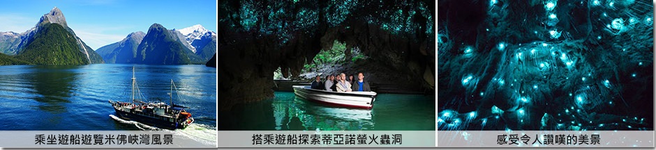 今早驅車前往米佛峽灣(Milford Sound)。此地位於南島西南方,在國家公園及保留區的境內,屬於世界遺產之一。峽灣內有著名的鮑文瀑布(Bowen Falls),高低差160公尺,落差146公尺的斯特林瀑布(Stirling Falls),以及仙女瀑布。還有麥特爾峰(Mitre Peak),標高1692公尺,直接從峽灣底部隆起,至1691公尺的高度,是世界上最高臨海山峰之一。其他如獅子山、象山等景觀,都是在冰河造成的特殊地形。在峽灣中不時可見到海豚、峽灣企鵝、海豹等海洋生物,海豹岬(Seal point)上常有為數不少的小海豹聚集! 傍晚我們搭乘遊船穿越蒂阿瑙湖( Lake Te Anau),展開蒂阿瑙螢火蟲洞之旅。您將穿越神秘的地下激流世界,在成千上万的藍色螢火蟲微光下漂流。藍光螢火蟲為紐澳地區獨有的螢火蟲品種,打造一個光之地下王國,美得令人難以置信。原始純淨的鐘乳石洞穴,穿過呼嘯而過的流水,你將乘小船駛向靜謐幽深的一角,數以千計的螢火蟲聚集於此,這將是您在紐西蘭獨一無二的視覺饗宴。 *提醒*:在紐西蘭有種叫做沙蠅的蚊蟲,看似蚊子般,但一旦被叮咬,皮膚紅腫且搔癢難耐,所以這邊特別提醒旅客身穿長褲長袖且準備好防蚊液喔! |