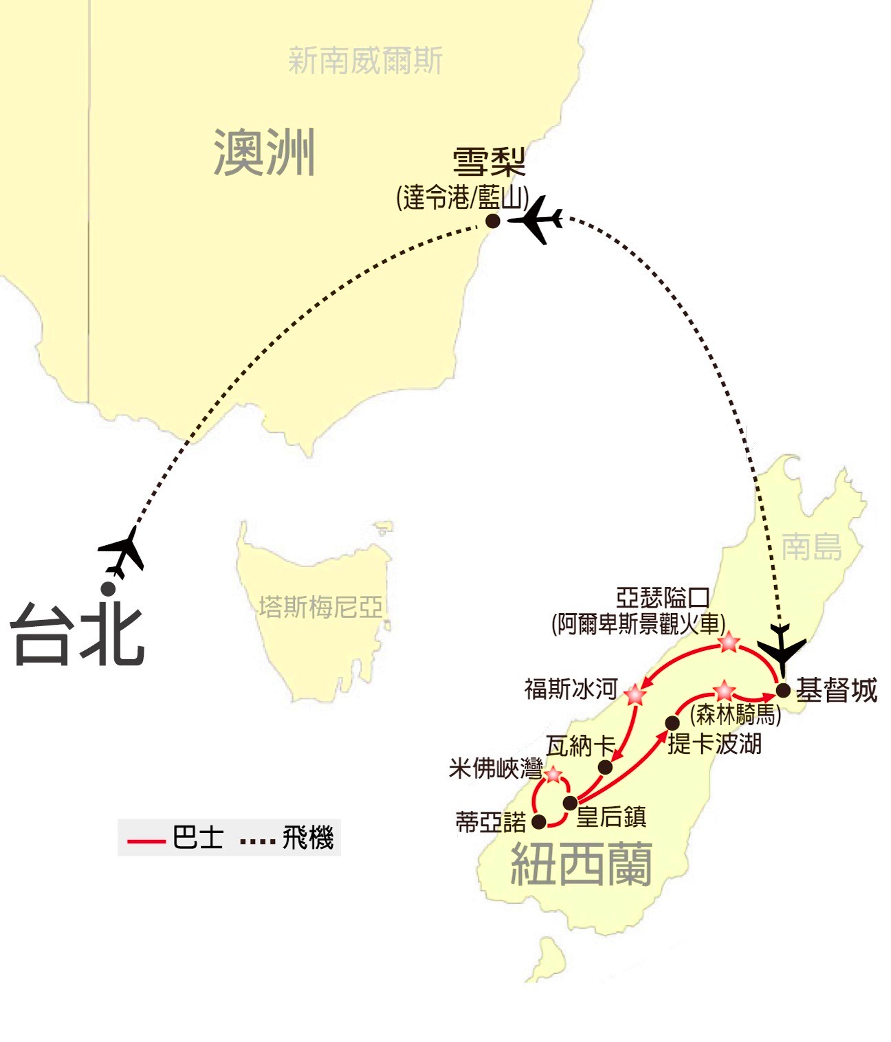 飛美家旅遊經典紐澳雙國12天 全程無私人購物店行程 早鳥報名就贈限量直升機冰河飛行 【紐西蘭南島】 世界知名高山景觀火車TransAlpine Hammers Springs 漢默溫泉 洞穴酒莊-品酒&午餐 森林騎馬+野餐 凱庫拉-海豚奇遇 瓦納卡-迷幻世界 蒂亞諾螢火蟲洞遊船 米佛峽灣遊船+船上午餐 南島渡假勝地皇后鎮 2晚 【澳洲雪梨】 澳洲第一大城雪梨 夜宿藍山國家公園 雪梨達令港景觀飯店 達令港早晨FUN輕鬆 |