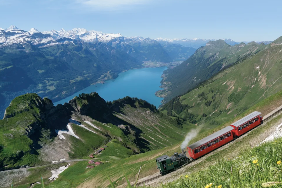 在布里恩茲(Brienz)搭乘懷舊的蒸汽火車,前往布里恩茨洛特峰,至海拔約1680公尺。火車從碧綠的布里恩茲沿途穿越如畫的森林。到達山頂部可看到阿爾卑斯山及伯恩高地的壯麗景色以及群山圍繞的布里恩茲湖,壯觀的全景會讓你驚嘆不已。