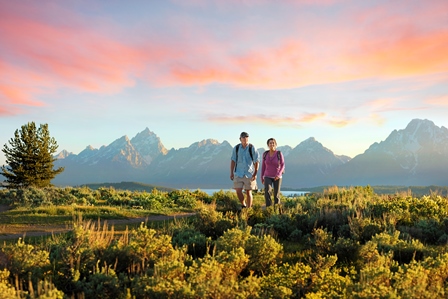 今日您可起個大早,自由在傑森湖飯店出發的步道如Lunch Tree Hill或Christian Pond Loop(來回約1000公尺左右)輕散步,呼吸清新的空氣,欣賞國家公園的美景,還有機會與國家公園的各種野生動物不期而遇。不想走路的您,也可到飯店大廳前的觀景台,欣賞清晨煙霧瀰漫的河谷,隨著太陽升起,煙霧散去,大堤頓連綿群峰的現身的光景,遠眺遠處的傑森湖。
