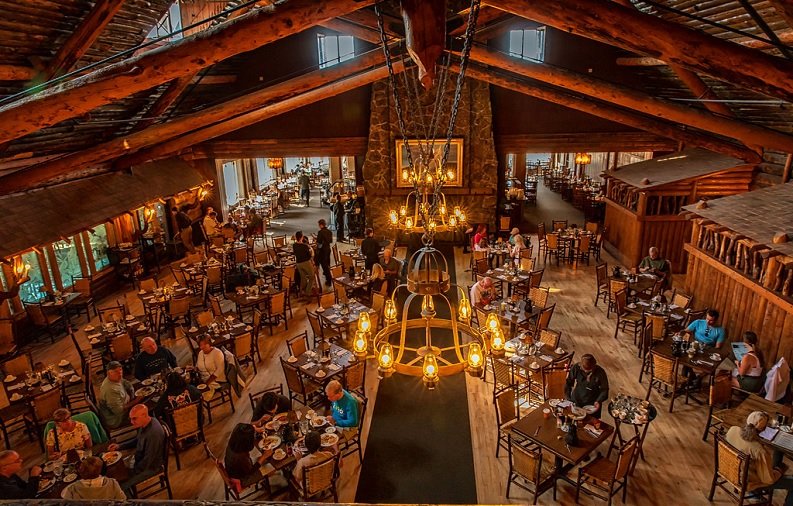 因地勢較高,從旅館大廳就能把大提頓諸峰一覽無遺。可以在景觀餐廳享用晚餐及早餐,從餐廳內欣賞大堤頓山景。