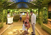創造靈感來自於凡爾賽宮圖畫般的美麗花園,擁有歐陸風味的主題菜單—早午晚餐的選擇包括來自全世界的珍羞佳餚,及奇境般的用餐環境,能隨不同的時間變幻,帶給您前所未有的用餐經驗。 晚餐體驗:一天當中,餐廳天花板會從白天時漂亮的天藍色,轉為夕陽的金紅,最後變為閃爍星空。此外,玻璃花吊燈會「開花」,沐浴在繽紛的色彩中;壁燈會變幻為摺扇,壁畫投射出昏暗照明,中央噴泉則閃耀著微微褶光。